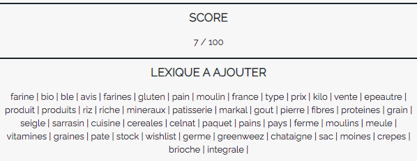 Une fois l’analyse terminée, l’outil vous donne un score d’optimisation de votre contenu. Cela vous permettra de vous tester une fois le contenu corrigé.