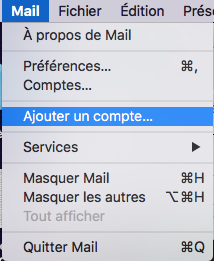Ouvrez Mail. En haut à gauche, cliquez sur l’onglet Mail > Ajouter un compte.