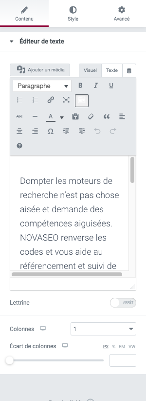 Éditeur de texte : il permet d’ajouter un paragraphe sur votre site.