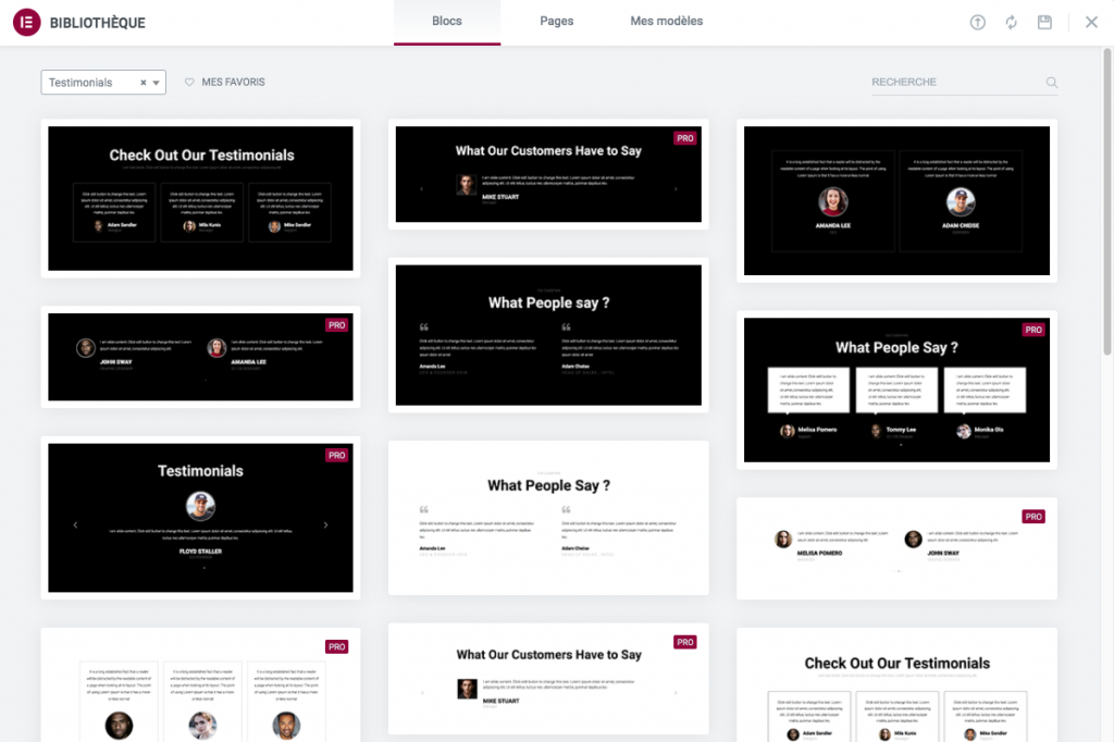 Pour chaque élement présent sur le site, vous avez 3 onglets différents permettant d’effectuer des modifications :