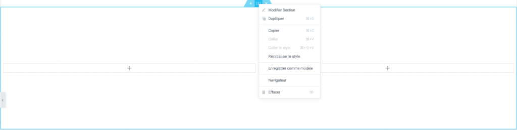 Pour sélectionner une section en particulier, il faut cliquer sur l’encoche bleue qui se trouve au-dessus. Le clic droit avec la souris sur les 6 petits points de cette encoche permet d’ouvrir le menu lié à cette section.